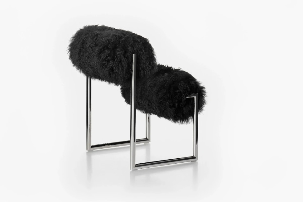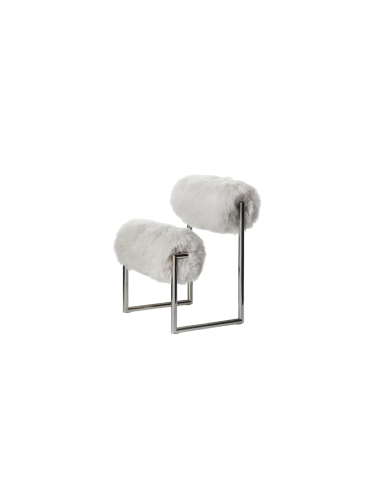 Technical Features: The Due Più Armchair has a sled frame made of tubular metal with a chrome finish and plastic feet. The seat and backrest are made of shaped cylinders with a diameter of 19 cm. Today, Acerbis offers it in Mongolian goat fur, sourced from food industry waste, following the principles of the circular economy, in perfect harmony with modern values.