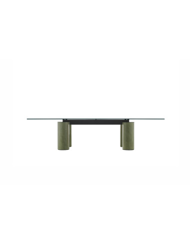 The Serenissimo table by Acerbis, created in collaboration with designers Lella & Massimo Vignelli and David Law, is a piece for the living area. It features a base made of large cylindrical elements, giving the design a unique touch.