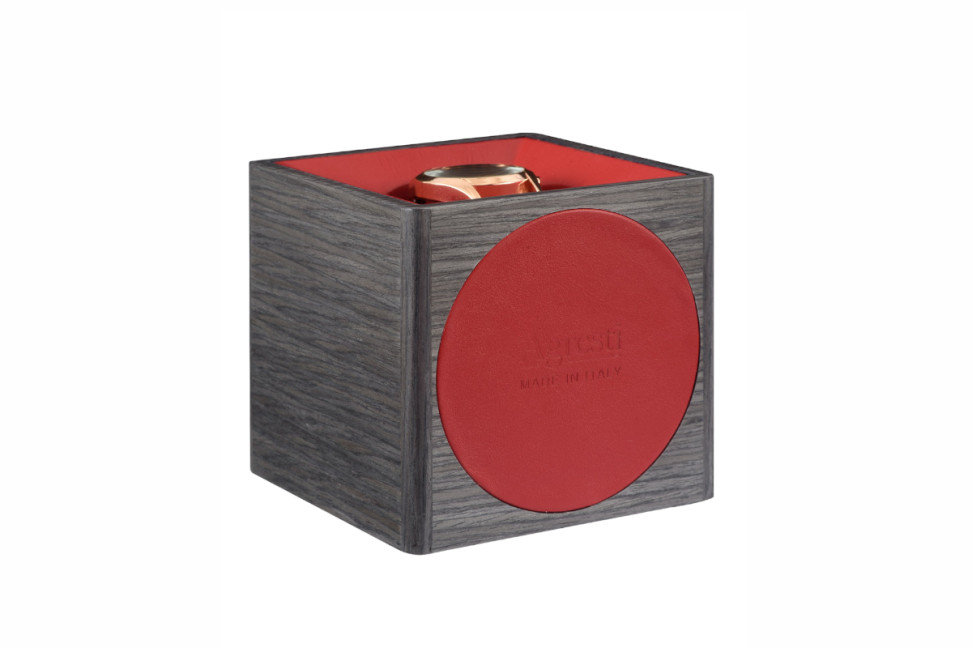 The Florentine company Agresti, which is accustomed to using exclusively Made in Italy raw materials, imports these components from Switzerland to guarantee its customers only the best materials; the Tempo Unico watch rotor comes in three versions: in glossy red briar, in glossy ebony and in glossy briar, all covered in leather. The Tempo Unico automatic watch rotor, like the other items in the collection, is a singular product that is perfectly suited to your needs. This small and practical design object features a touch switch and battery operation.>