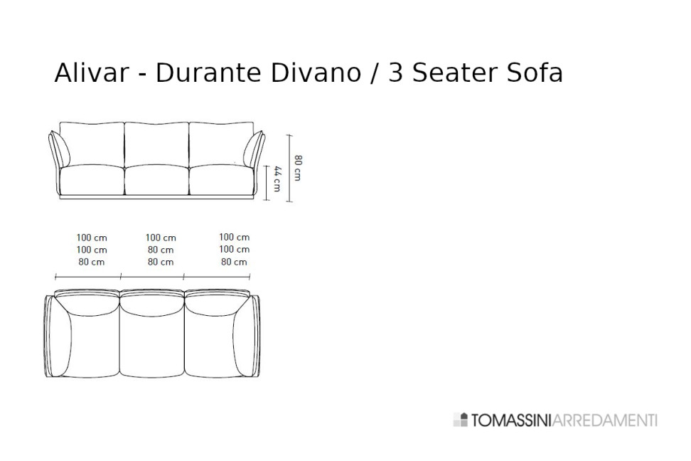 Durante sofa, in its linear versions, is available in the following sizes: