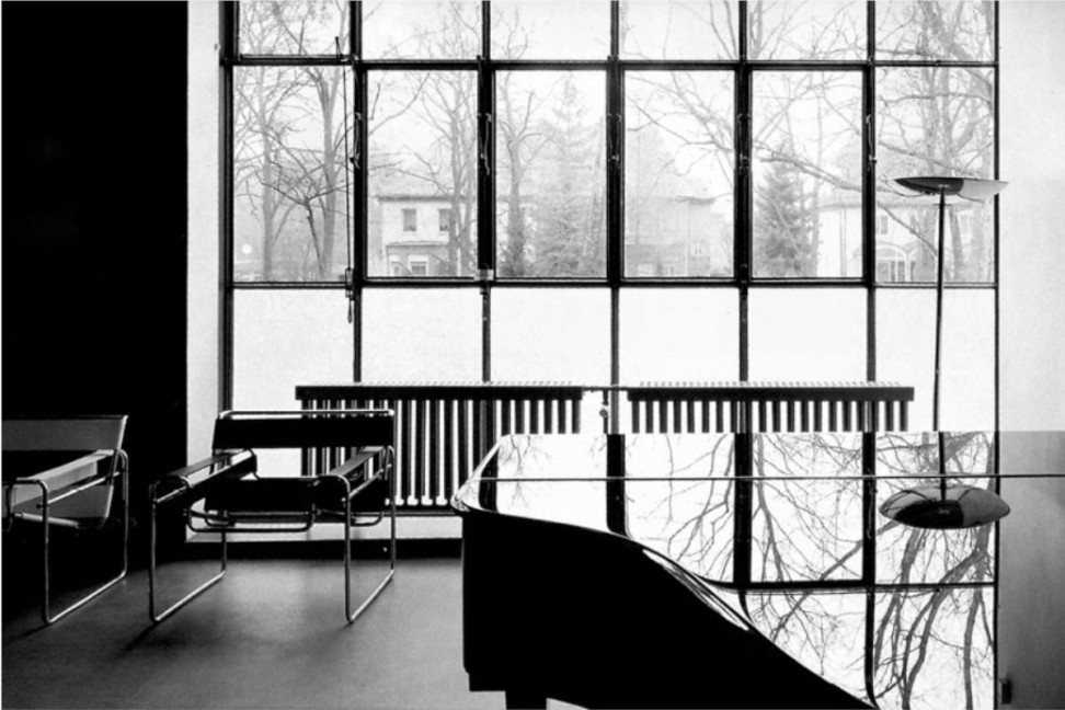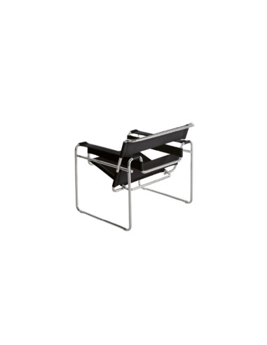 The Wassily chair was conceived by Bauer and takes its name from the fact that it is said to have been designed for Wassily Kandinsky's flat. The current version dates from 1927. The armchair consists of a chrome-plated or lacquered steel tube frame. Seat, back, and armrests are made of leather, pony skin, or heavy hemp coupled with leather.