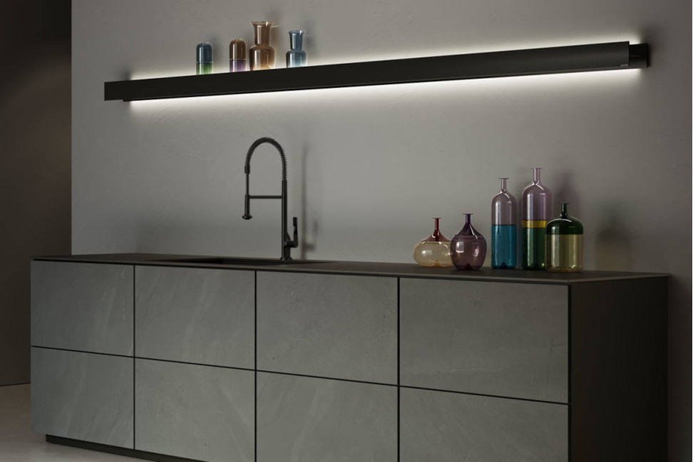 The Letteramuta shelf is standard in Opaque White, but it is possible to select all the colours of the vast Antoniolupi range to better suit the nuance of the project. In the context of the bathroom, it excellently fulfills its function as a support next to the bathtub, allowing you to place all your facial or body care products and, if necessary, to include a practical towel rail. When used in the shower area, the shelf has a central slit to allow for proper water drainage. Regardless of the environment in which it is installed, the shelf can be fitted with a built-in LED lighting system, which can be positioned either at the bottom to directly illuminate the surfaces below, or at the top for a more even spread of light upwards.