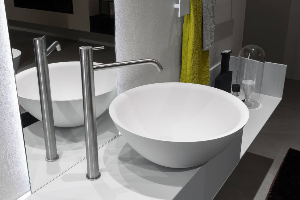 The Servotondo sink designed by Mario Ferrarini for the brand Antoniolupi is very versatile and suitable to be inserted in any type of furniture.