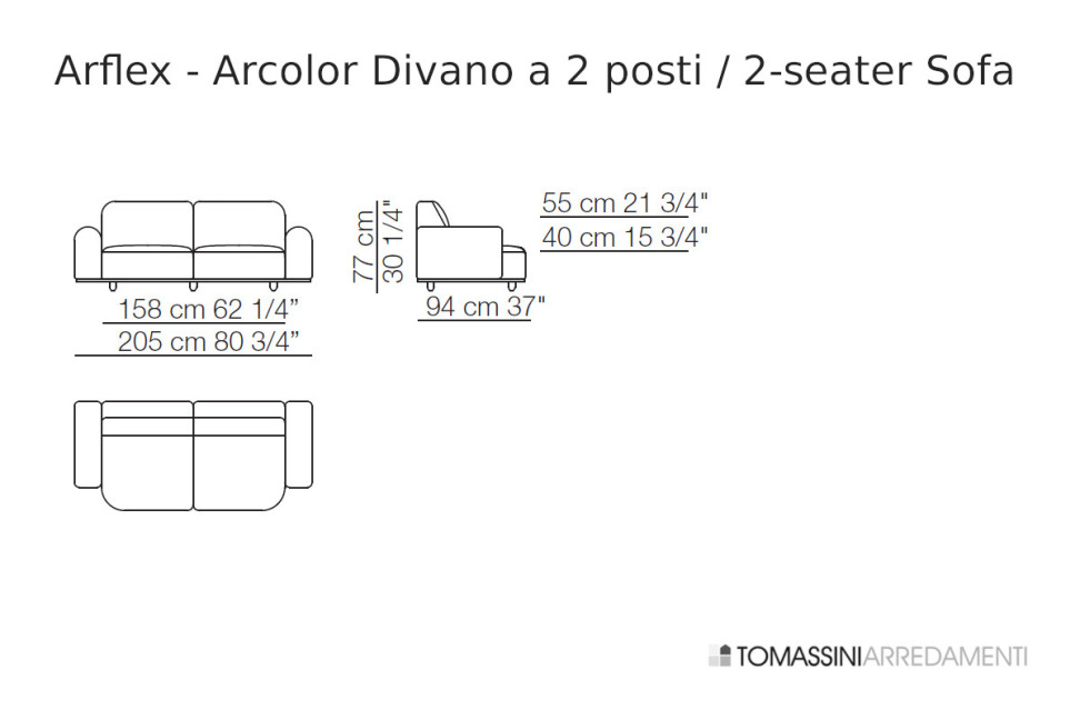 The Arcolor sofa by Arflex, thanks to numerous existing modules, is available in infinite configurations. Among the linear options, we find the following dimensions: