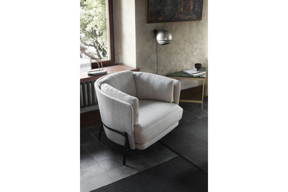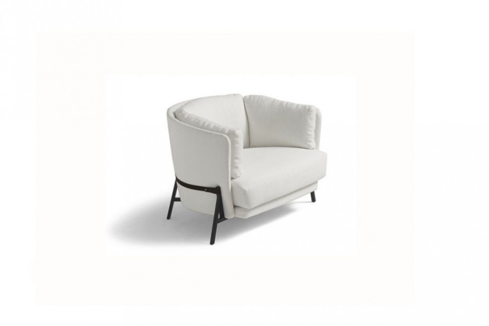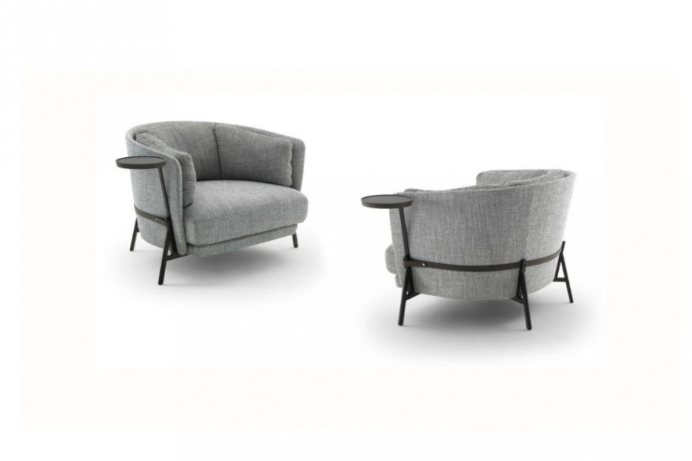 The Cradle armchair, born from the creativity of the designers Neri & Hu for the Arflex brand, is part of the homonymous line which includes, in addition to the armchairs, also sofas and tables. The peculiarity of the armchair is the structure: a classic triangular construction in black lacquered metal, which is repeated several times around the model, so that it can be admired from every point of view. The armchair is covered in completely removable fabric.Arflex
