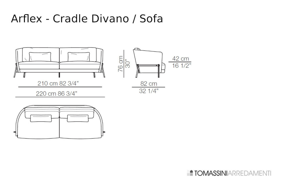 Cradle Standard Sofa: cm. 220x82x76h.