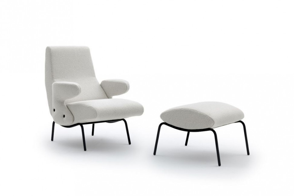 Considered one of the most significant examples of the so-called "organic" furniture of the 1950s, the Delfino armchair is designed by Erberto Carboni and presented by the Arflex brand.
