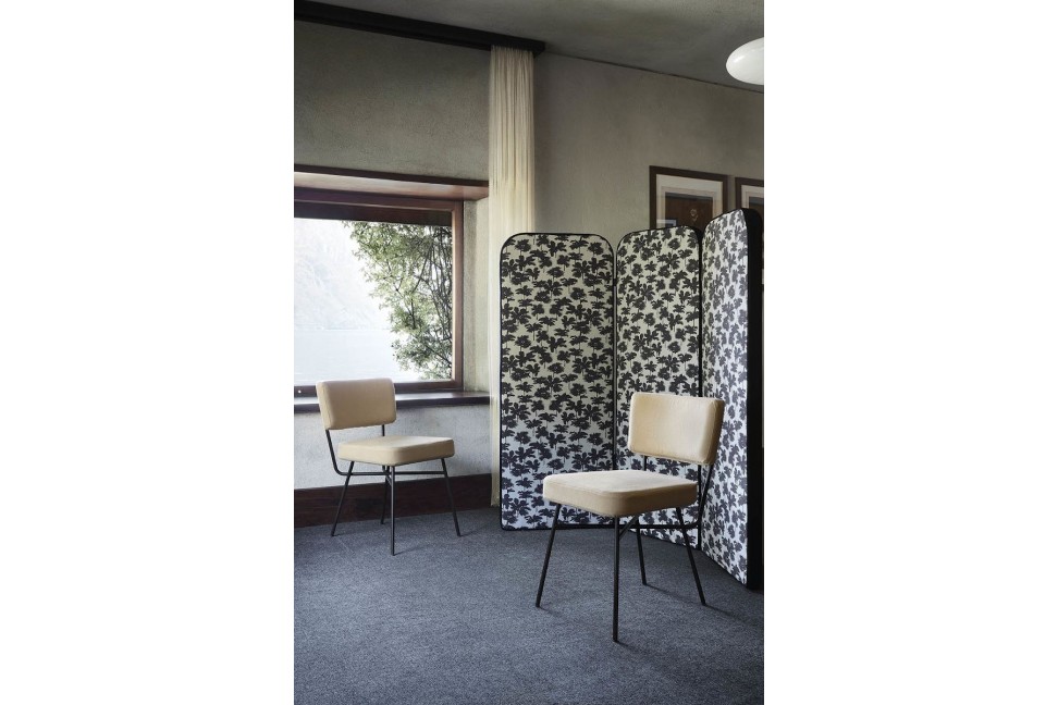 Born in 1954 as an office chair, the iconic Elettra chair, designed by the B.B.P.R studio, adapts perfectly to any environment. Arflex proposes it for the living room, which is enriched by its essential and modern design: the base is in black lacquered metal and the upholstery can be in fabric or leather.Arflex