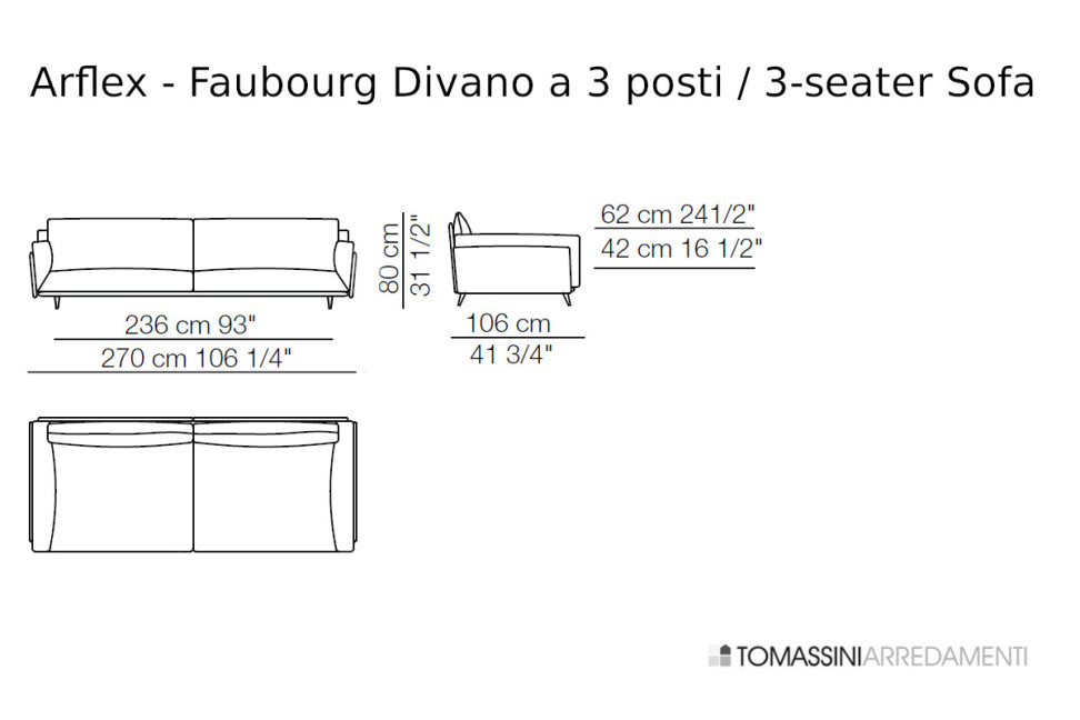 Faubourg 3-seater sofa: cm. 270x106x80h.