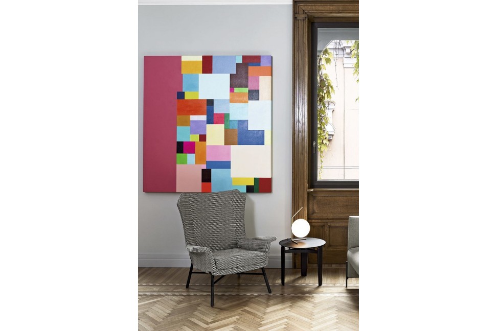 Classic lines and modern design are combined in the Giulietta armchair, designed by the B.B.P.R. Studio in 1958 for Arflex. This armchair has a black lacquered metal base, enriched with ash wood inserts, available in wengé, oak and chocolate stained finishes; the seat is welcoming, the backrest is high and the armrests are wide. The Giulietta armchair is available with upholstery in a wide choice of fabrics and leathers.Arflex
