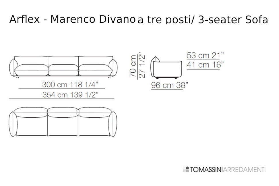 The Marenco Couch is available in different sizes, and even standard and large versions for linear compositions, such as: