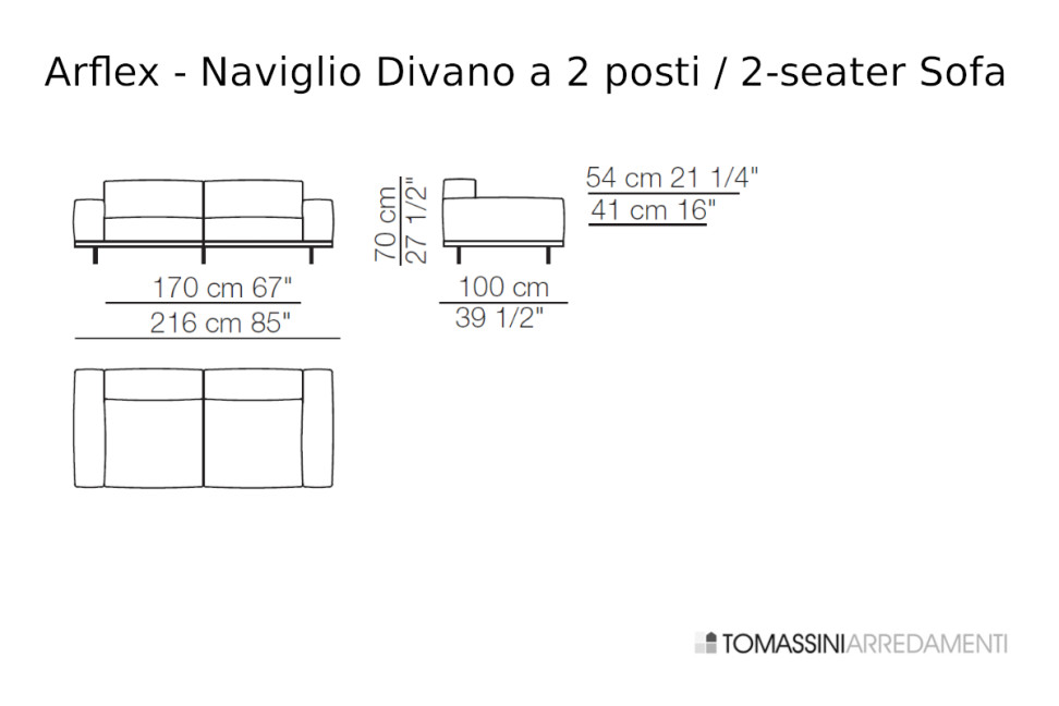 The Naviglio Sofa has the following dimensions and configurations