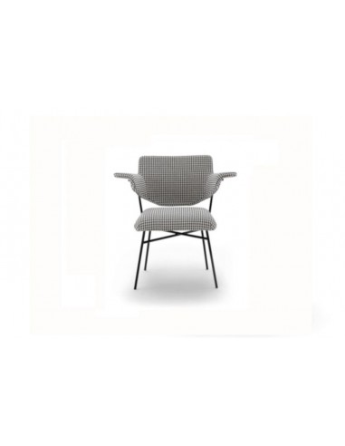The Neptunia collection was born in 1953 as a continuation of the Elettra chair line, also signed by the B.B.P.R. This chair is now proposed by Arflex, as a modern and impactful complement. The base is in black lacquered metal; the seat is padded and, as well as the backrest and armrests, is covered in fabric. The Neptunia chair is suitable for both hospitality and domestic living spaces.Arflex