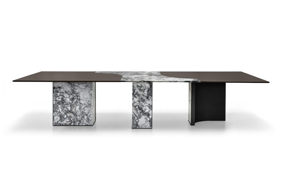 Millennium embodies the harmonious interplay of contrasts and pairings. Its surface features a marble top that pairs with wood, creating a visual contrast between materials that nevertheless mutually respect each other. The legs of the table present an additional contrast between metal and marble, offering a solid and elegant finish to the overall design. This combination of elements gives rise to a captivating aesthetic, where minimalism is enhanced and valued rather than diminished.