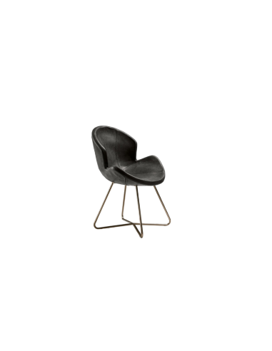 The Victoria chair is available only with leather upholstery, while the base is made of metal painted in micaceous brown, oxy grey or titanium.