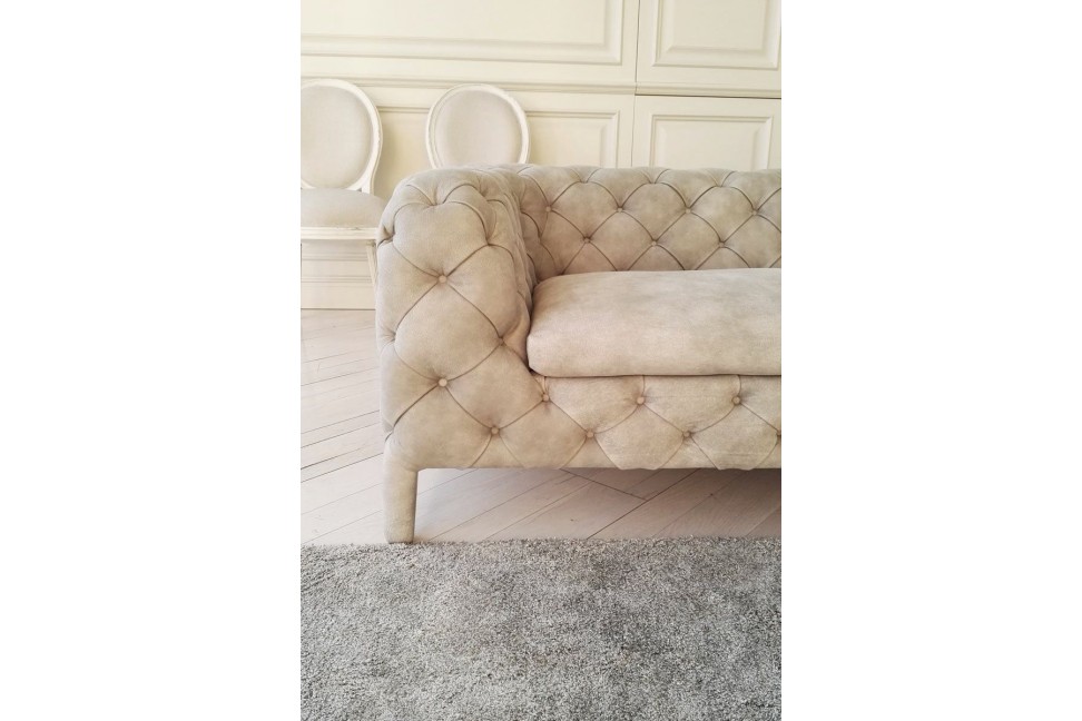 The Windsor sofa, in expo offer in our showroom, is a piece of furniture that will not go unnoticed in your living area. The chosen dove-grey coloured leather upholstery makes it perfect for any type of setting.