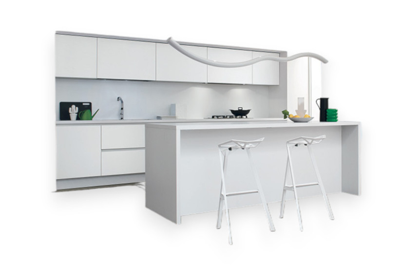 This trait is also reflected in the AK_01 kitchen, where glass, aluminum and laminates are mixed, articulating spaces. Arrital has payed special attention to the new lighting systems, specifically to groups LED, that enable reduced energy consumption at low operating temperatures and greater durability.