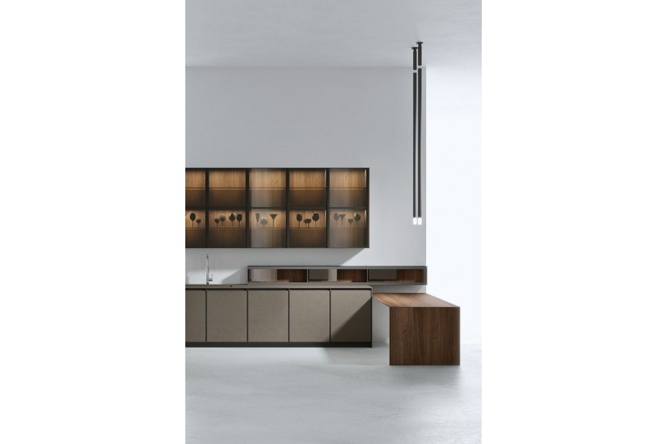 This kitchen was born from the combination of knowledge of the Designer Franco Driusso and the Chef Andrea Berton, who created a customised product for cooking lovers, integrating aesthetics and specific functions.