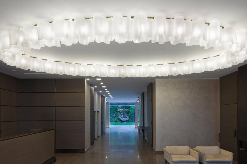 The line was crreated by the internationally renowned designers Michele de Lucchi and Gerhard Reichert and is characterized by an aluminum structure with an elegant blown glass diffuser available in white, gray and tobacco colors. The Logico suspension lamp is available in four different sizes and in various configurations. Its modular nature allows you to create customized compositions for large and elegant environments. In addition to the hanging version, Logico comes also in the ceiling, wall and table models.