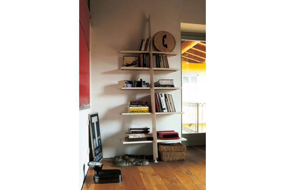 From the winning collaboration between Philippe Starck and Baleri Italia comes a modern and revolutionary collection, the Italian company gave free rein to the imagination of its international artists, in fact it offers an unique and inimitable design collection. Among them one of the most popular is the Mac Gee bookcase.The Mac Gee is a timeless bookcase, with an inclined upright that can be leaned against the wall. The edge reminds the wing of an airplane, the shelves are set cantilevered and protrude from the uprights to give it milder and futuristic shapes. This bookcase can be completely dismantled and is available in matt black, metallic silver and white.
