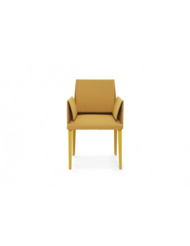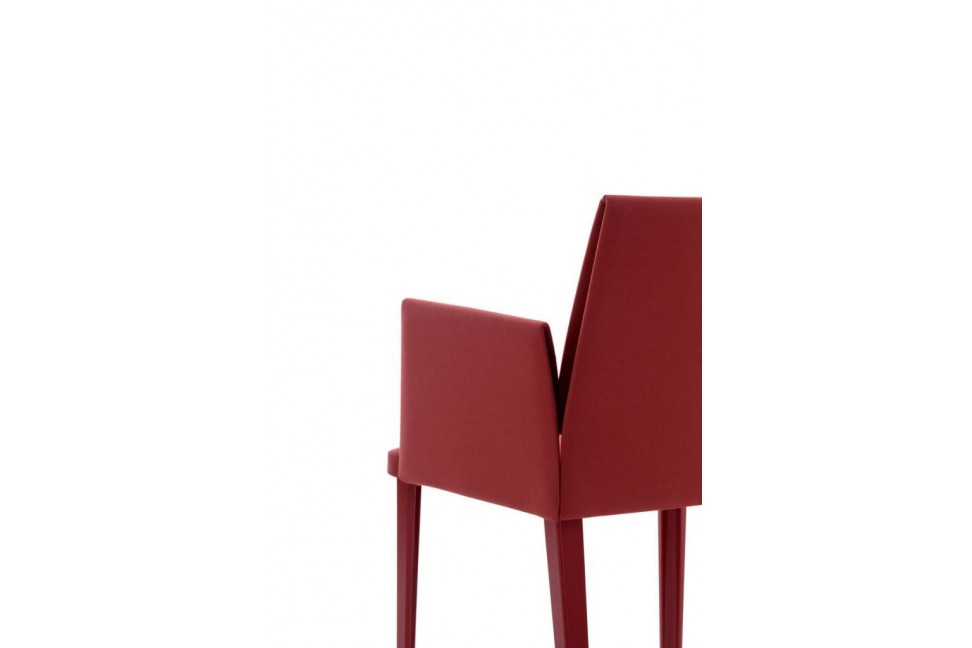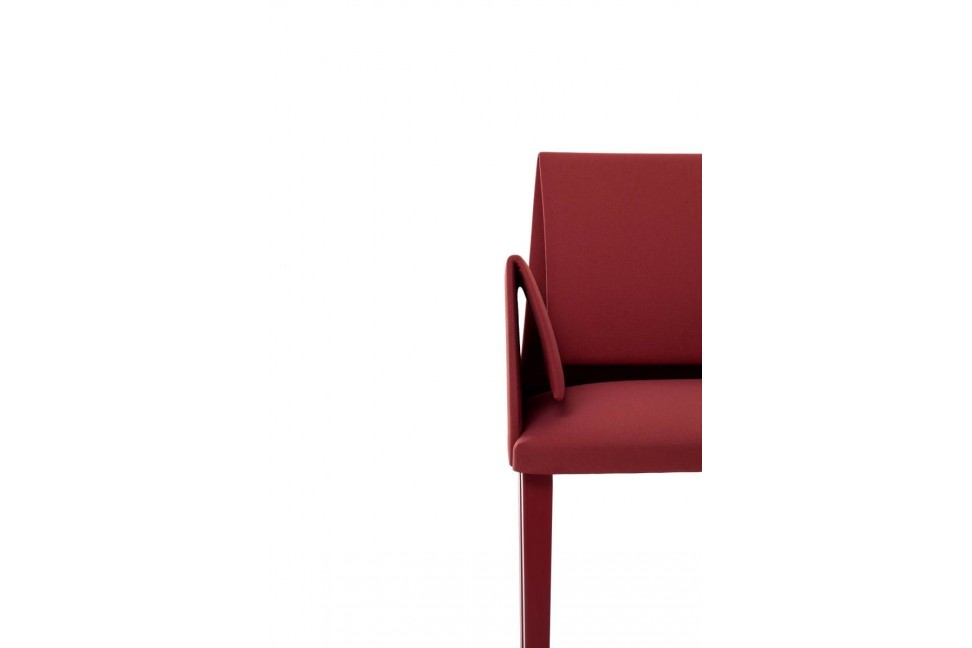 This chair has a solid steel frame with flexible backrest and armrests and a solid polyurethane upholstery. The lining is available in fabric, technical fabric or leather.