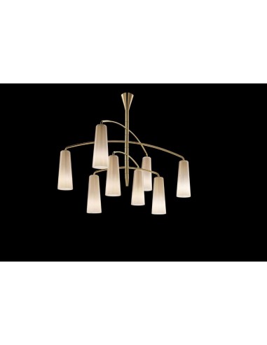 Colimaçon stands out for its ability to easily change its appearance thanks to the swivel arms of its structure that can assume multiple configurations, allowing the creation of completely personalized compositions. The entire metal structure is available in polished chrome, gold or black, to be matched with the colors of the lampshades, available in gold beige, gray / white, white / red, white / bluish. Colimaçon comes in nine different versions with four, six, eight, ten or twelve lights.
