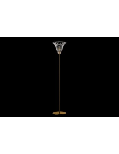 Rigati is one of the most famous collections signed by Barovier&Toso, one of the oldest and internationally renowned Italian companies specialized in the production of luxury lighting.The Rigati floor lamp features a structure and a base in polished brass with simple and essential lines that highlight the elegant fan-shaped lampshade, available in transparent or cognac-colored glass, whose shape is inspired by that of the homonymous vase - iconic product of the Italian brand. The surface of the lampshade is characterized by charming bubble decorations, obtained through a procedure conceived by Ercole Barovier in the 1900s. The collection also includes the wall, table, ceiling and suspension versions.