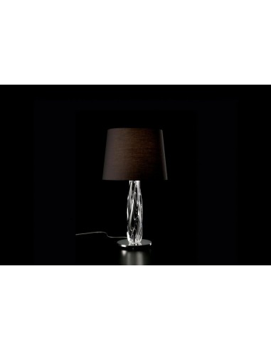 Twins is a sophisticated table lamp that displays the distinctive craftsmanship of the Barovier&Toso production, a prestigious Italian brand that, for over seven centuries has profoundly marked the tradition and culture of the Murano glass art.The lamp is composed of a particular swirling structure in full glass surmounted by a lampshade available in white and black colour, while the base is made of polished chromed metal. The twist of the central structure creates a play of light and shadows due to the reflection of light on the superficial facets of the glass. The collection also includes the chandelier (in three different models) and the wall lamp.
