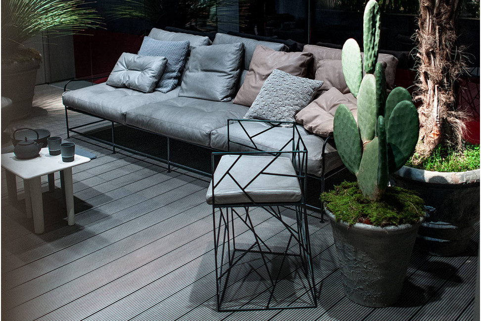 Girgenti is the perfect result of the encounter between two types of crafts: the processing of iron and leather. This makes the Girgenti outdoor sofa more than a simple item of furniture: it bears fundamental and indispensable design values, thus becoming a timeless, versatile sofa and with an extraordinary aesthetic satisfaction. Girgenti has a zinc-coated frame made of matt black-varnished metal reinforcing rod, while the seat is covered in leather suitable for an outdoor use. The collection is completed by a wide choice of ottomans and a dormeuse.