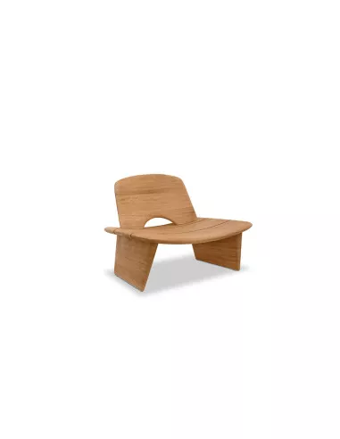 An armless armchair that, with its simple and harmonious curves, goes to delineate a wide and welcoming seat. The structure in solid natural Iroko, a typical African wood, evokes distant destinations and makes the product a pleasant piece of furniture to place in any context.