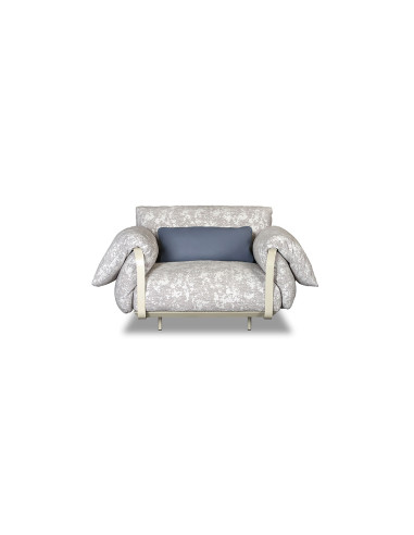 Designed by Studio Pepe, this armchair has an irregular silhouette with large, soft cushions that form the back, seat, and fall softly over the armrests. The cushions are embellished with a powder-coated 316 stainless steel frame in light or dark gray colors. By adding decorative cushions, it is possible to make this armchair even cozier and more comfortable. The Narcissus armchair is the perfect element to furnish your outdoor space also thanks to the fabrics and leathers designed for its upholstery, which are weather-resistant.