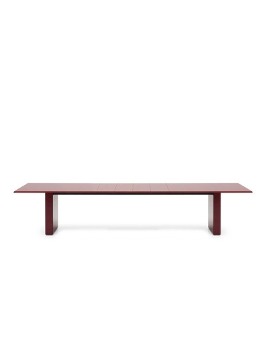 The fixed Assiale table is available in red Levanto marble with a glossy polyester finish and cannot be configured in terms of finishes and materials. The extendable Assiale table can be configured in both legs and top in a wide range of colors, with a glossy or satin finish.