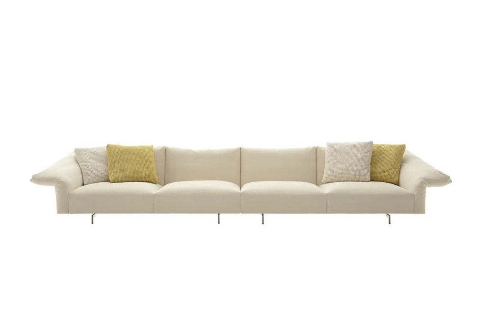 The design of the Dambo Sofa was conceived by Piero Lissoni, an internationally renowned designer and B&B Italia's artistic director since 2021, with the idea of creating a comfortable and welcoming setting: it features large and soft cushions made from high-quality materials. Characterized by elegant and soft lines, with a slender silhouette, it is an elegant and sophisticated addition to any living space. A unique feature of Dambo, now part of the B&B Italia sofa collection, is its armrests that open outward, giving a sense of lightness and refinement.