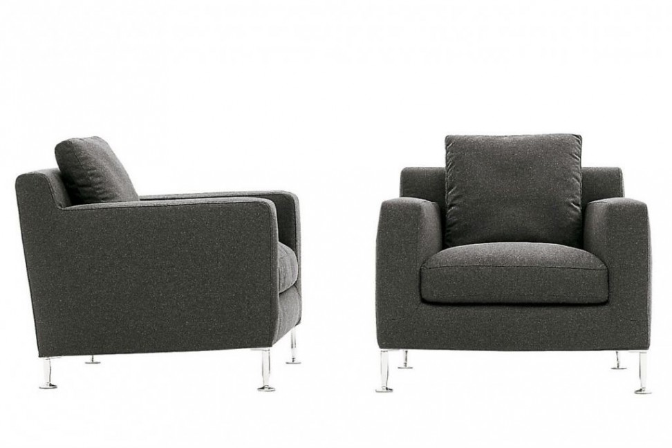 The main feature of the Harry armchair, which is comfort, derives from the relationship between the angle of the seat and the back, while his unmistakeable mark is the aluminum foot.