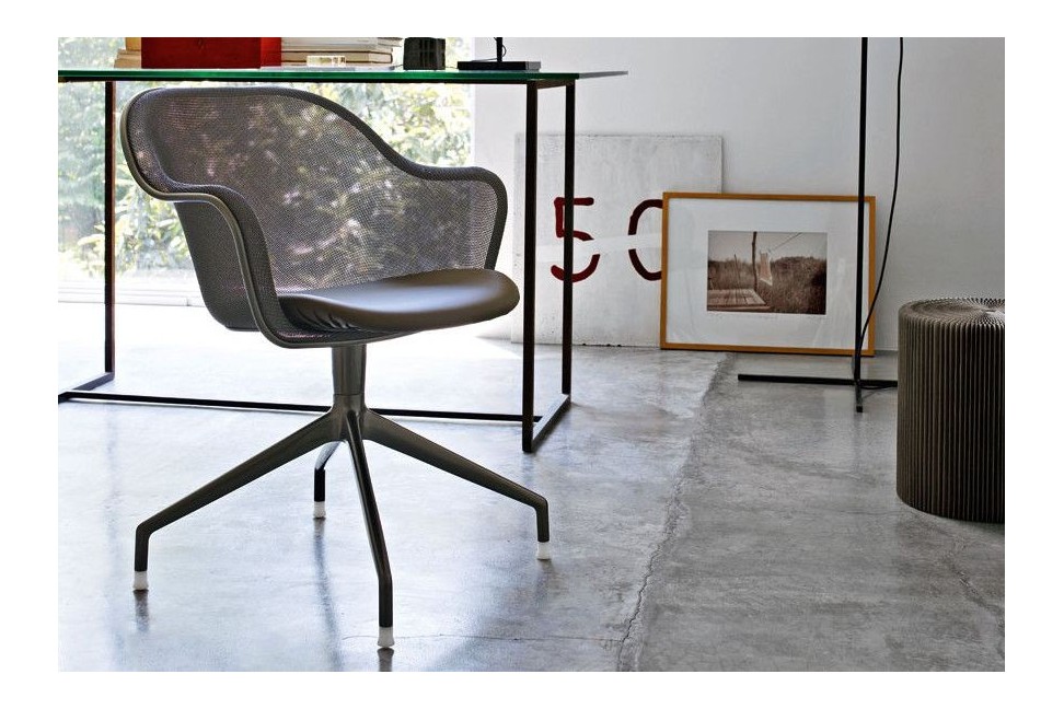 The Iuta chair has been designed to bring back in the domestic environment an office furniture seat. Its litghtweight lines make it perfect both for home office and for the living area.