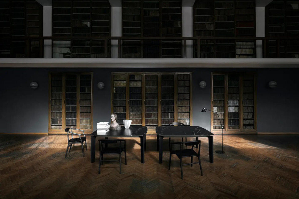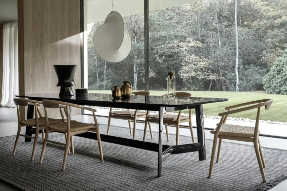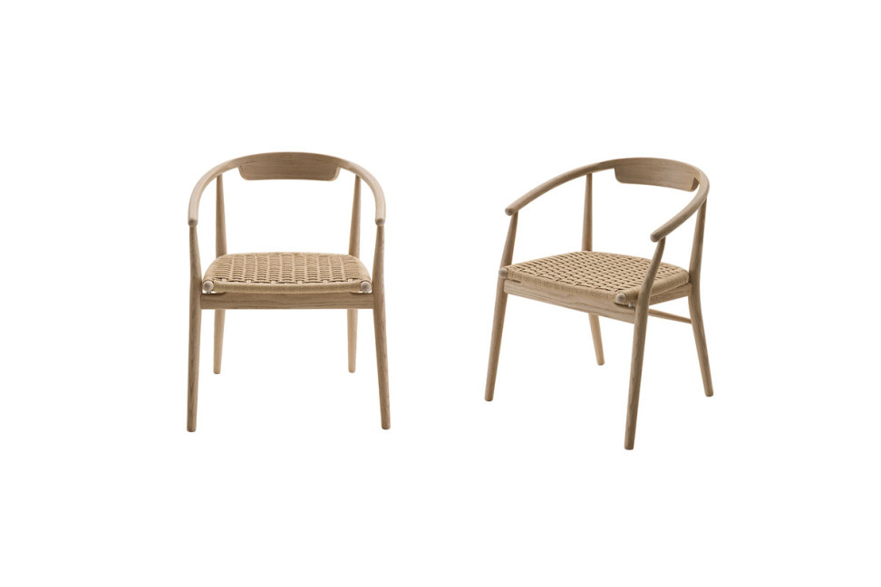 The Jens Chair, part of the collection designed by Antonio Citterio for B&B Italia, reinterprets the elegance of 1950s Chinese chairs in a contemporary key, highlighting the craftsmanship of turned and curved wood.