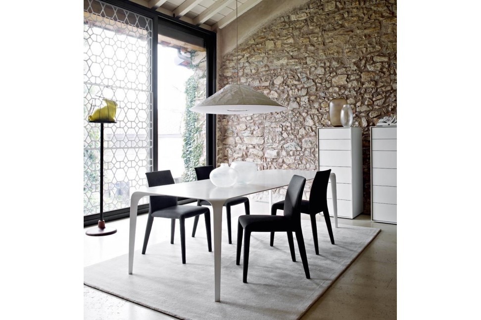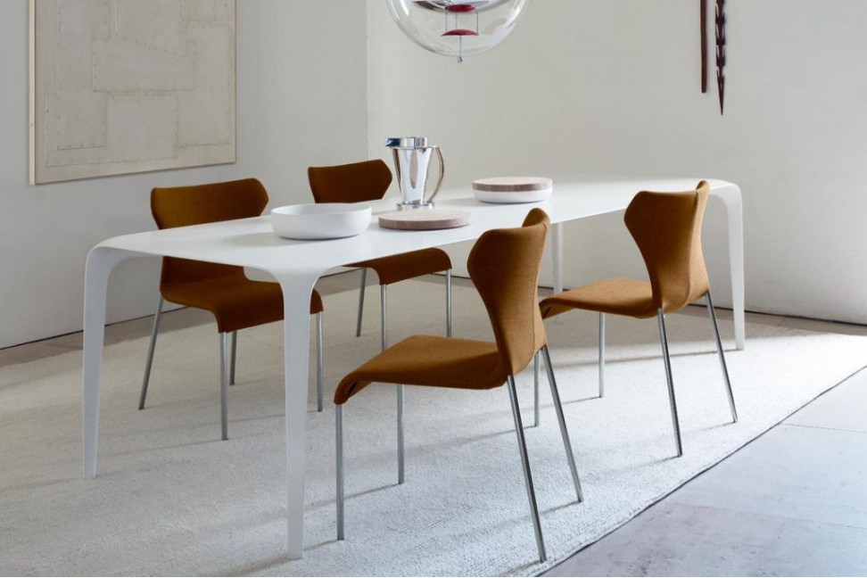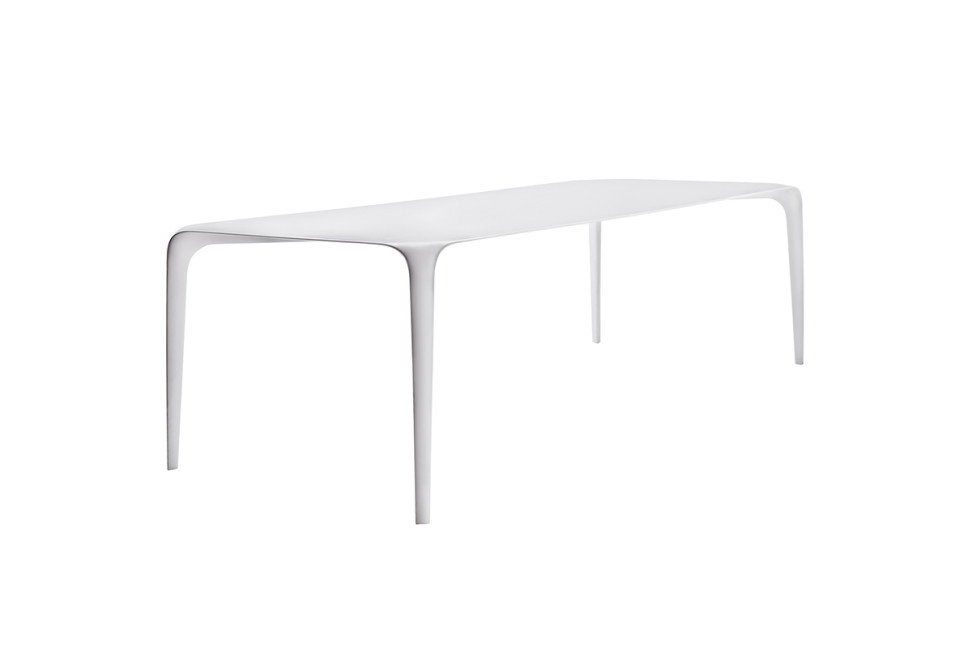 The Link table by B&B Italia, design by Jakob Wagner, is a one-piece, molded, continuous table, without joints, that exploits the characteristics of Cristalplant® with a great smoothing effect of material and softness.