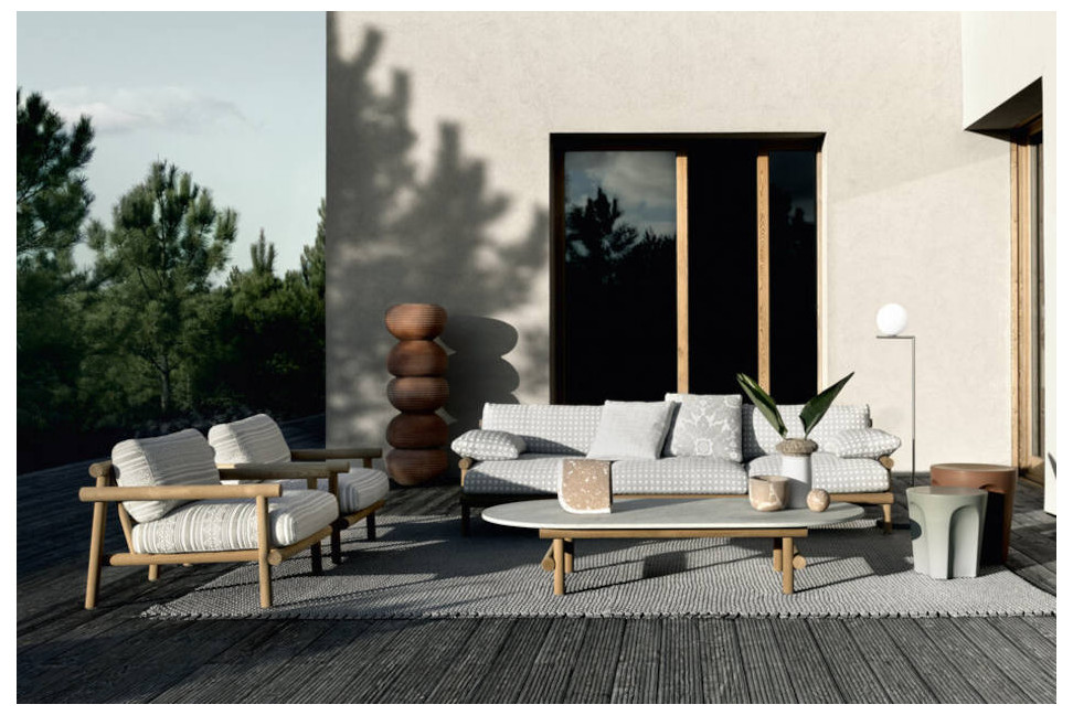 The Ayana armchair, designed by Naoto Fukasawa for B&B Italia Outdoor, is part of an original and innovative collection, which plays with intersections and proportions.