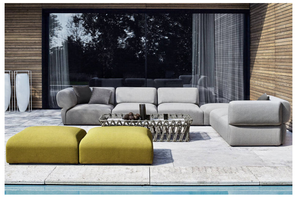The angle of union between the armrest and the backrest of the sofa forms, in fact, the characteristic butterfly shape, from which the B&B Italia sofa is named. The pouffe is the base piece of the collection of Butterfly sofa, which, extended with backrest or with an armrest, gives origin to a terminal or central element of the sofa . The Butterflysofa is born from the combination, through a simple junction, of all these elements, creating a wide range of stylistic configurations. B&B Italia offers the ability to compose linear sofa, angular sofa and vis-à-vis sofa, concluding with a lounge sofa version. The Butterfly sofa is the first textile of the B&B Italia Outdoor collection to be fully upholstered, thanks to production technology of the Italian company, which in this way leads outside the excellent quality and comfort that are always precious values ​​of B&B Italia in the world.