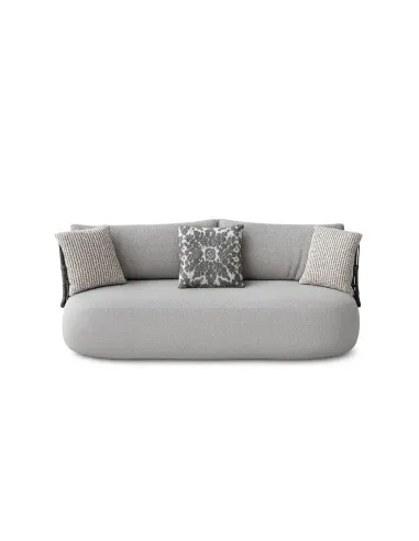 The B&B Italia Outdoor Fat-Sofa 3-seater Sofa, designed by designer Patricia Urquiola, is characterized by the round and generous shapes of the seat combined with the metal backrest with handmade weaving, which gives a visual lightness and a distinctive artisanal mark.