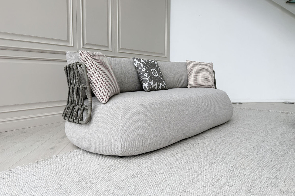 The B&B Italia Outdoor Fat-Sofa Sofa, designed by Patricia Urquiola, brings a seating silhouette already established in the brand's catalog outdoors. The curved, full lines of the indoor version faithfully mirror the original model, without compromising its character. What changes is the relationship with the surrounding space: the hand-woven weave of the backrest introduces a sensation of lightness and a handcrafted touch that integrates perfectly with outdoor spaces. This is not simply an aesthetic detail, but a design solution specifically conceived for open-air settings.