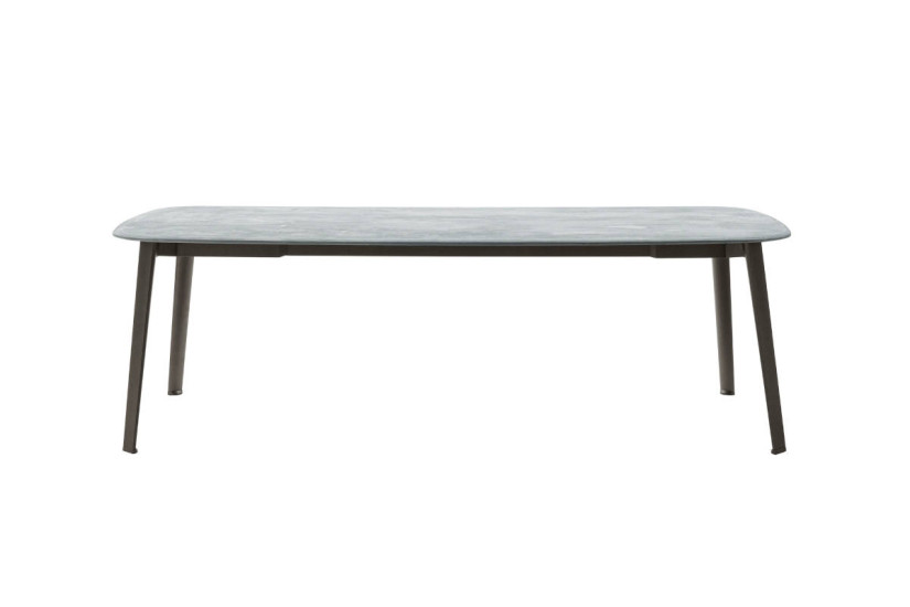 Its linear style makes it a timeless piece of furniture, suitable for any need. It has an anthracite painted aluminum structure and a top in Serpentine, which is an extremely durable and precious stone. The Ginepro table is available in two shapes, round and rectangular with rounded corners, and four different sizes from which you can choose the most suitable for your outdoor environment.