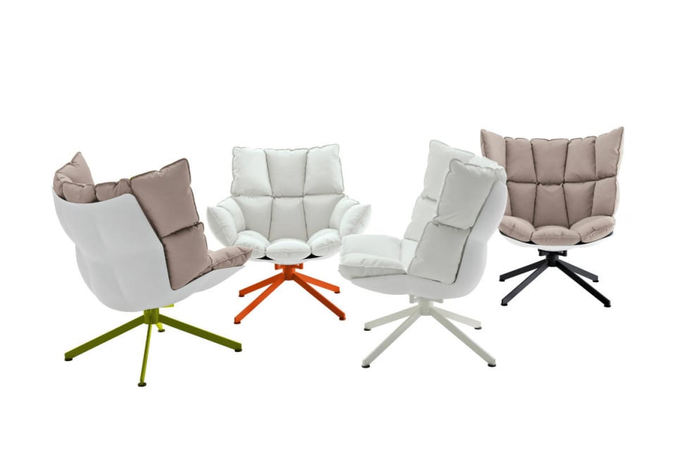 The armchair Husk Outdoor by B&B Italia Outdoor is characterized by a rigid Hirek® white shell and by a series of fluffy pillows, expressing a new design language, a sort of hymn to the softness.