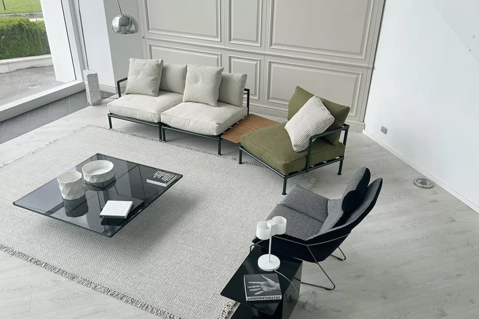 In designing the Nooch outdoor sofa, Piero Lissoni takes inspiration from Nong Nooch, a wonderful tropical garden in Thailand from which it takes its name. This sofa is a modern piece of furniture with a soft and essential design that does not give up its green side. In its creation, in fact, Piero Lissoni and B&B Italia continue their collaboration to create unique yet sustainable design pieces. The Nooch sofa features a tubular frame in regenerated aluminum and a top in aluminum slats on which soft cushions rest in virgin bio-polyurethane. The combinations that can be achieved by hooking together the various modules of the sofa are endless, allowing you to create always unique compositions. A small round-shaped coffee table can be inserted between the cushions to complete the sofa.