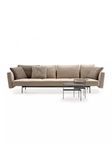 A constant research, in order to achieve a formal balance of the elements, led to the realization of this sofa, with its essential but cozy shape. This sofa can well adapt itself to a lot of contexts, thanks to the possibility to choose among many different modules, an ottoman and a chaise longue. SAKé sofa has been made with a steel structure and its seats are available in three different dimensions.