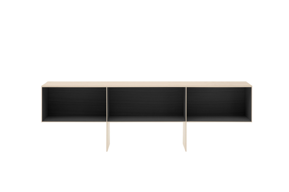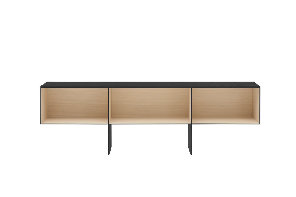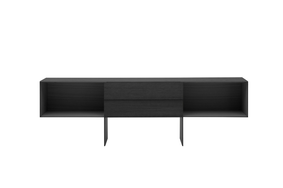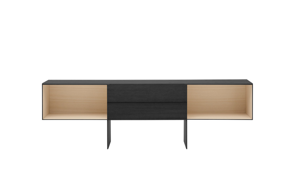 A lightweight and elegant piece of furniture, available in both open compartments and central drawers versions, in light or black brushed ash. Its versatility and flexibility make it suitable for any type of use and context, both for home and office.