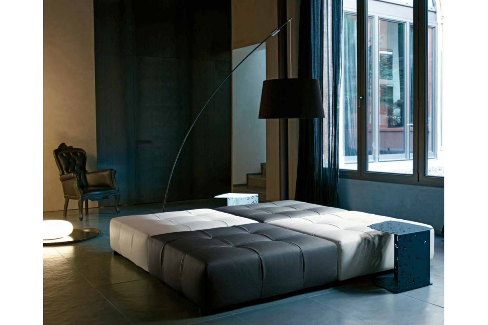 Tufty-Time sofa, design by Patricia Urquiola, is characterized by the upholstery, now proposed in leather, is subdivided into large squares that are joined by pleats, perforated in the leather version, to ensure the seat breathing.
