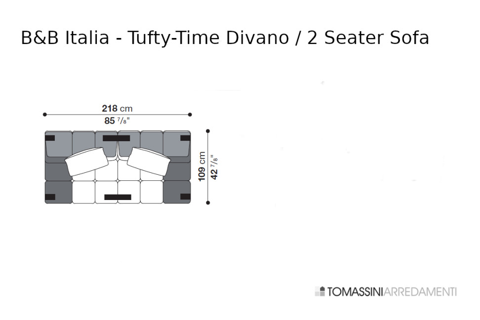 2-seater sofa: Inch. 85" 7/8 wide, 42" 7/8 deep, 24" 3/4 high (cm.218x109x63h)