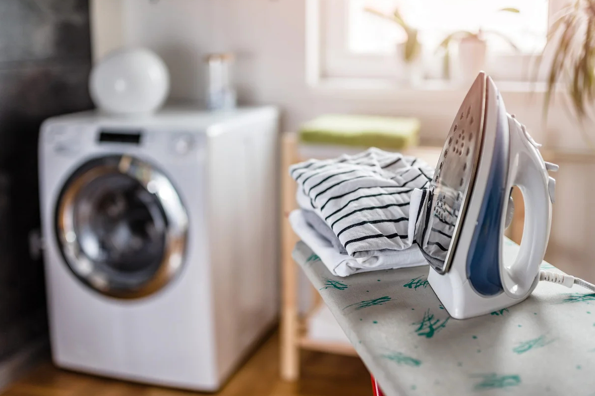 If we want to avoid tripping over them every time we enter the closet laundry room, we can hang them on the wall with a nail. That way they will stay firmly and neatly in place. At most, we can hide them with a colorful curtain, which will also brighten up the room.