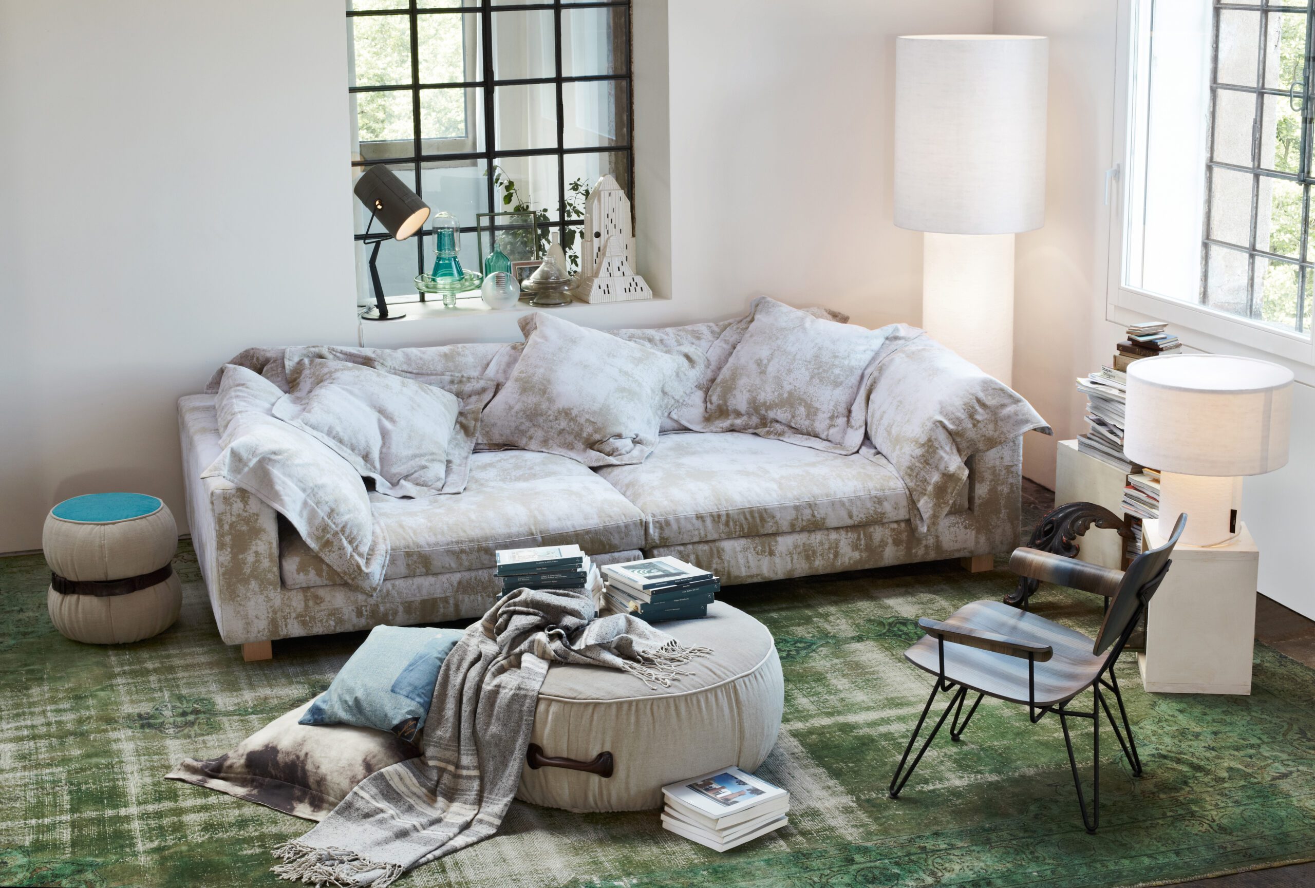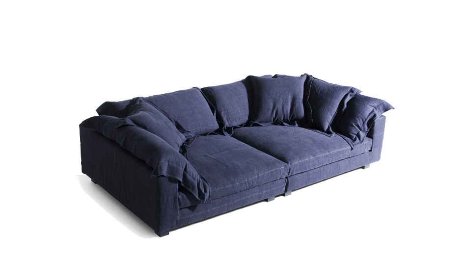 The Nebula Nine sofa, which is part of The Camp, is soft as a cloud, has generous shapes, and is a place where you can sit or lie on large cushions. Nebula Nine of Moroso is characterized by a structure of great strength and compactness made exclusively of wood and covered with large, wraparound cushions covered with stone-washed linen.